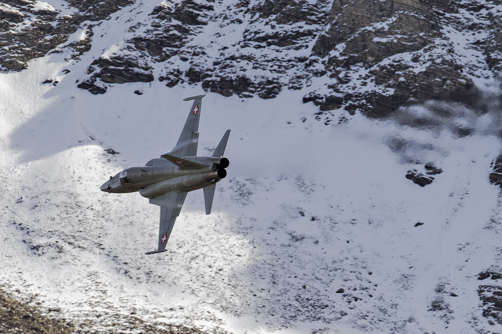 Axalp w Szwajcarii. Na co dzień to mała wioska na wysokości 1535 m n.p.m. z pięknym widokiem na jezioro i miasteczko Brienz. Jednak co roku w październiku zmienia się miejsce pielgrzymek ludzi z całego świata zafascynowanych lotnictwem. Wszystko za sprawą ” Fliegerschiessen Axalp ” czyli w tłumaczeniu “strzelanie na żywo”. W rzeczywistości jest to poligon strzelecki szwajcarskiego lotnictwa, gdzie piloci mogą doskonalić swoje umiejętności lotów na niskich wysokościach i strzelań do celów naziemnych ustawionych na zboczach gór. Oficjalna części imprezy to dwa dni oficjalne i dwa dni treningów. Niestety nie można zapomnieć, że pogoda w górach to nigdy nic pewnego i tak też było w tej edycji. Jedyny dobry dzień na zdjęcia to pierwszy dzień treningów. Później było już tylko gorzej.